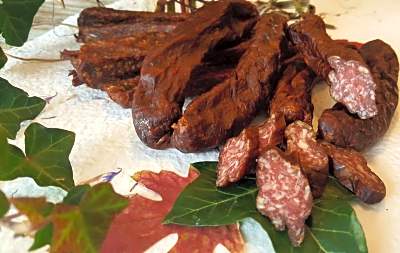 Landjäger und Hauswurzen mit Ziegenfleisch . Die Ziegen verbringen den Sommer auf unserer Alpe.